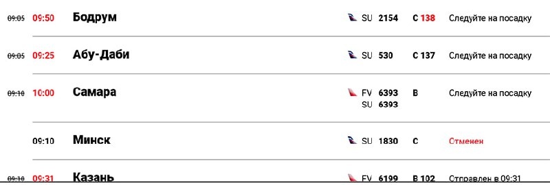 Нам пишут: «Сейчас в Шереметьево кучу рейсов переносят часа на четыре. А те, что не переносят, просто «висят», но вылет не дают…». Мы проверили - и, увы, ситуация этим не ограничивается: вылет более 40 бортов «Аэрофлота» отменили, в том числе несколько в Минск, Минводы, Санкт-Петербург, Сочи и Калининград. Все они в первой половине дня, после 15 часов отмен пока нет. Часть оставшихся рейсов, действительно, сдвинута. Задержки небольшие – в основном, в пределах 1-2 часов. Некоторые перенесли на 3-3,5 часа: в Стамбул, Бодрум, те же Сочи и Калининград. Но таких пока немного. UPD Авиакомпания "Аэрофлот" подтвердила, что отменила 42 пары рейсов в/из Москвы в связи со сбоем информационных систем @tourdom