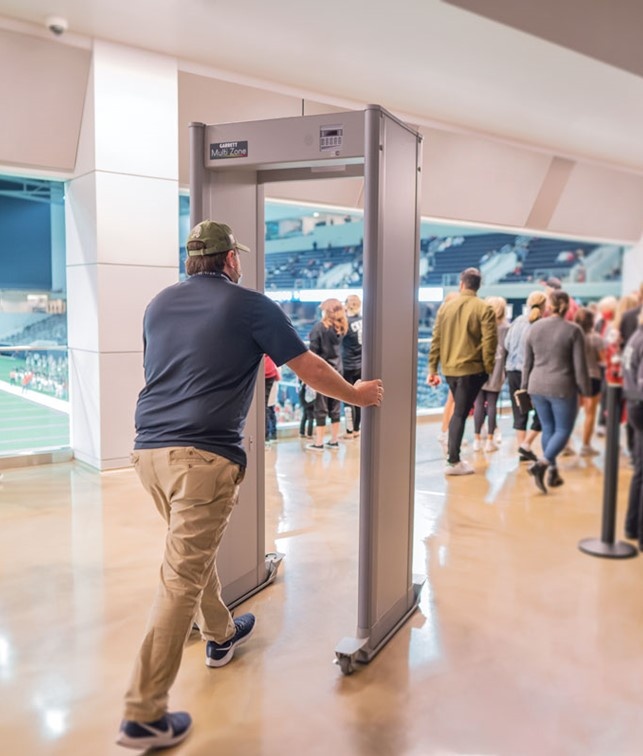 1. Мобильность и легкость в использовании Модели арочных металлодетекторов GARRETT MZ-6100 и Paragon имеют блок бесперебойного питания, а PD-6500i можно дополнить данной опцией. Теперь не нужно тратить время на прокладку проводов и организацию питания – металлодетекторы работают от встроенного блока бесперебойного питания. Установка металлодетекторов на роликовые опоры обеспечит простую транспортировку и быстроту развертывания на мероприятиях. 2. Удаленное управление Для контроля и управления арочными металлодетекторами на месте события рекомендуется установить модуль компьютерного интерфейса CMA. Это позволит вам следить за работой металлодетекторов и управлять их настройками