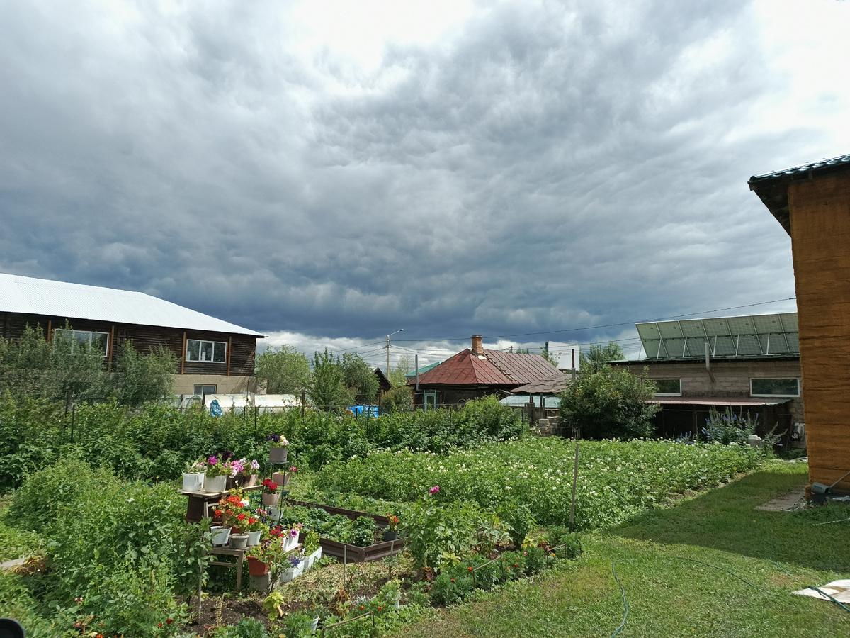 Честно, сперва не знала, что ответить. Даже зацепило, потому что львиная доля работы действительно на мне. Пошла для успокоения нервов полоть дорожки между грядок и заодно обдумать ответ. А на улице хорошо после дождика, он под утро прошел, все мне полил. Дышится легко. Правда комары пытаются жрать, но не сильно. На сегодня и завтра передали штормовое предупреждение с сильным ветром, грозой, ливнем. Небо затянуто тучами, но нет-нет, да и проглядывает солнышко.