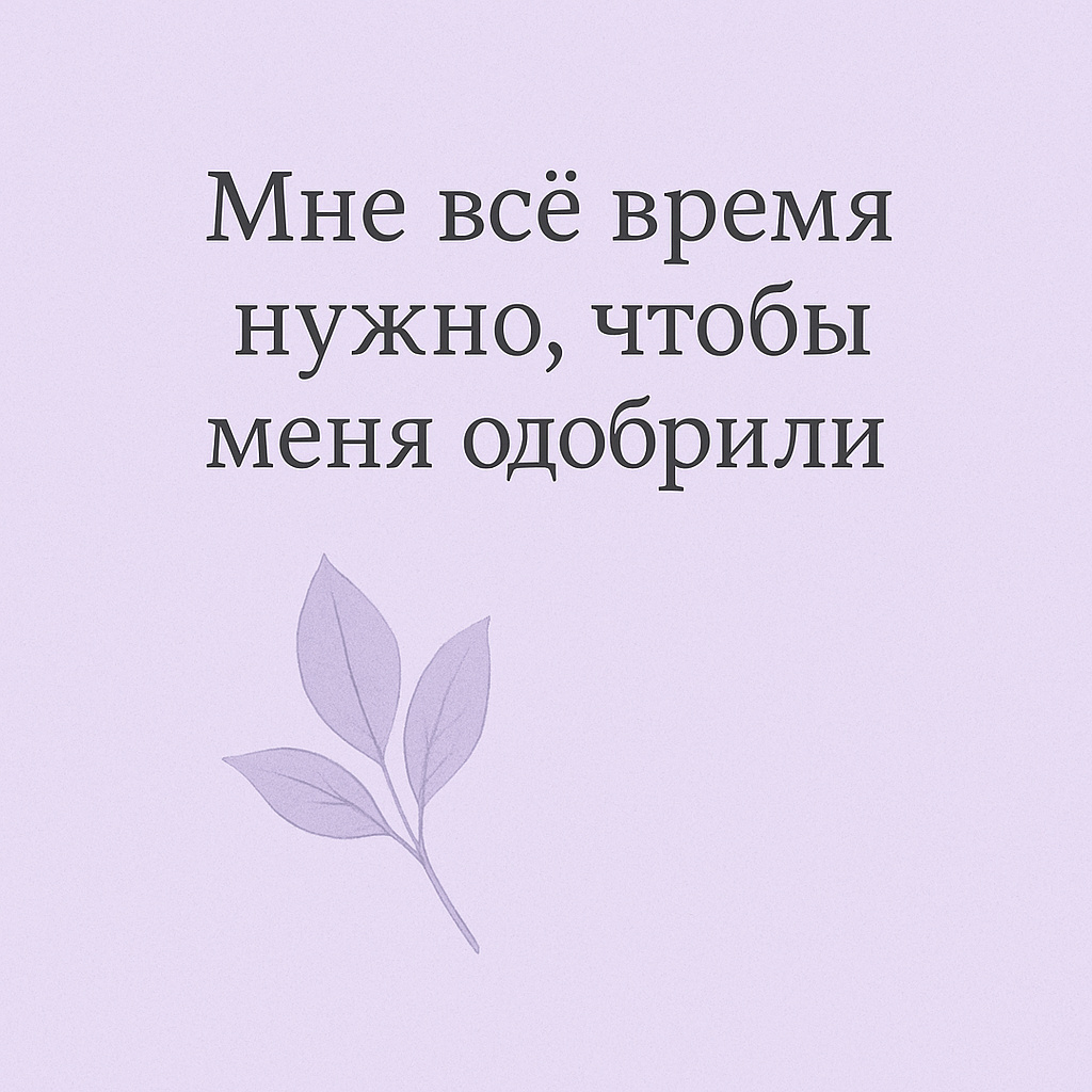 «Я всё время думаю, что скажут другие. Хочется, чтобы меня похвалили. Чтобы сказали, что я молодец. Если не одобряют — будто теряю опору». С такими словами часто приходят клиенты. Снаружи это может выглядеть как стремление быть «хорошим человеком», забота о других, вежливость, перфекционизм. Но внутри — постоянное напряжение и тревога: вдруг осудят? вдруг они подумают что-то плохое обо мне? Как я буду с этим жить? Почему так происходит? Зависимость от внешнего одобрения часто формируется в детстве, когда любовь и принятие были условными. Например: Со временем внутри формируется убеждение: «Я в порядке — только если меня одобряют». Это становится основой низкой самооценки и постоянной тревоги. Как это проявляется? Эта зависимость мешает жить полноценно и чувствовать себя в безопасности. Ведь если ваша самооценка целиком зависит от внешних оценок, то она постоянно колеблется вместе с ними — и вы не можете контролировать этот процесс. Как с этим работать? В терапии мы сначала учимся замеч
