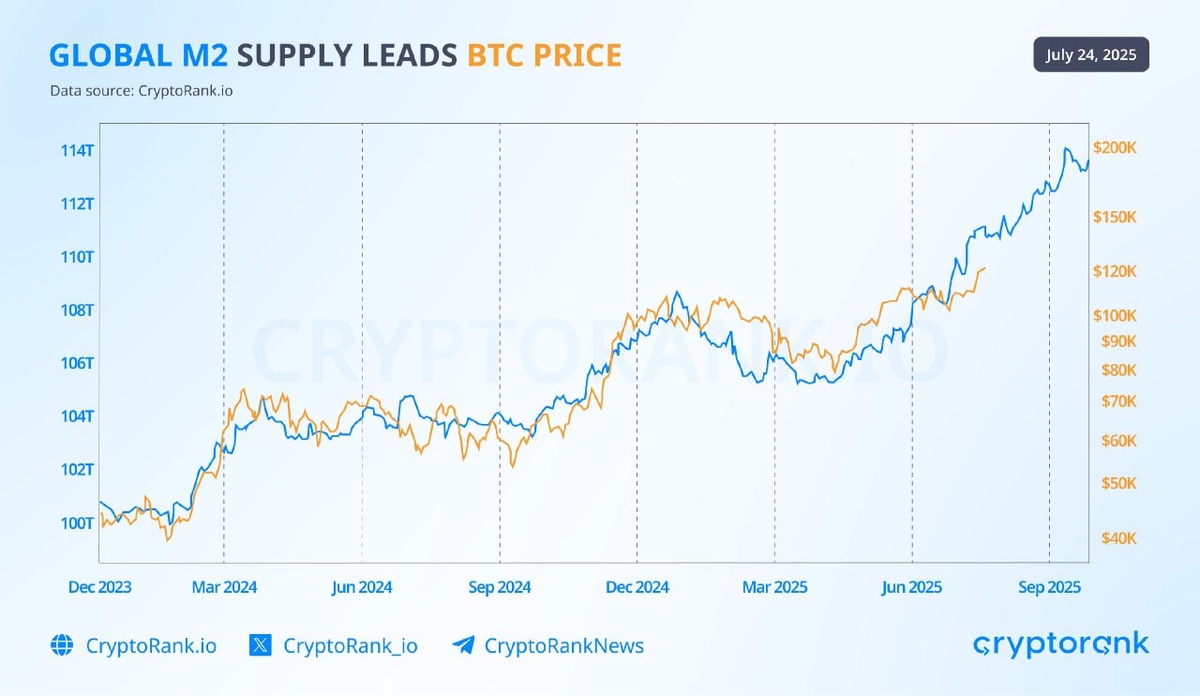 #BTC Bitcoin Биткойн продолжает отслеживать глобальное предложение M2