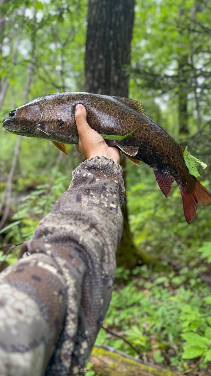 Вчера ездил на речку, небольшая, но рыбы в ней полно. В каждой ямке по ленку стоит. Ну и хариус крупный тоже был 🎣