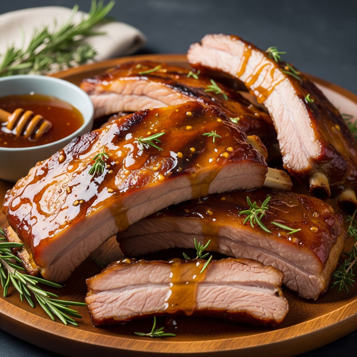- Маринад: В большой миске смешайте мёд, соевый соус, измельчённый чеснок, имбирь, томатную пасту (или кетчуп), уксус, растительное масло, соль, чёрный перец и красный перец хлопьями (если используете).