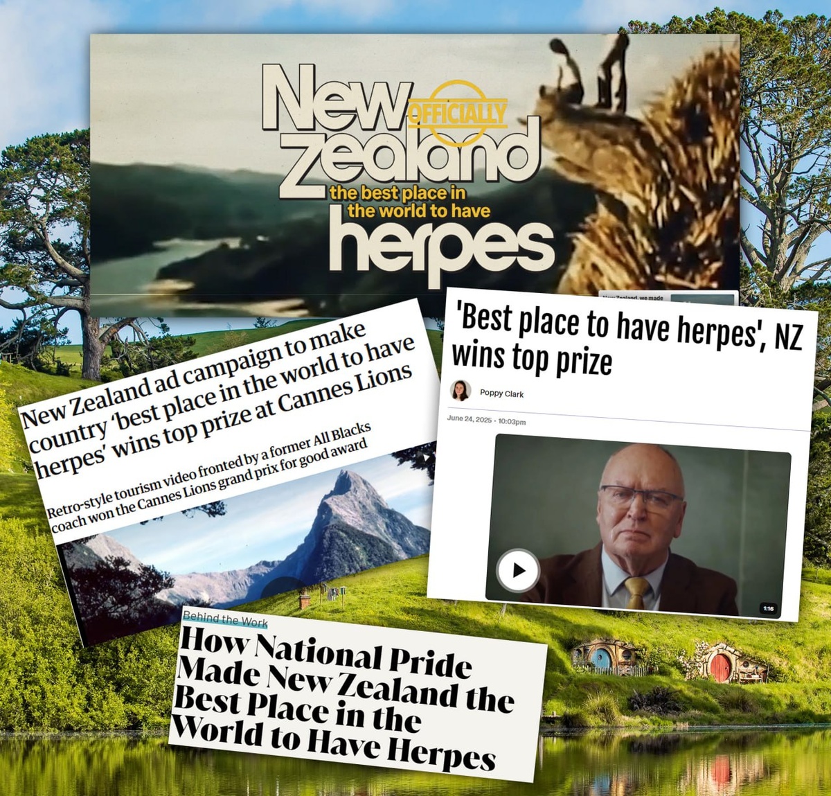 Лучшее место в мире для герпеса? И снова понедельник, и снова отжигают новозеландцы. “The best place in the world to have herpes” — «Лучшее в мире место, чтобы болеть герпесом». Именно с таким слоганом Новая Зеландия получила Каннского льва на фестивале рекламы. Да, вы всё правильно поняли - не за водопады, не за пейзажи «Властелина колец», а за вирус. Даже сайт есть thebestplaceintheworldtohaveherpes. com. Там новозеландцы признаются в том, что у нации кризис идентичности. Популярность регби падает, пироги дорожают, а сексуальность новозеландского акцента снижается рекордными темпами. И спасти национальную гордость теперь может только герпес. 🇳🇿 Идея кампании: Новая Зеландия — небольшая страна, и ей трудно конкурировать с большими державами в «глобальных достижениях». Но в чём она точно преуспела, так это в создании самых комфортных условий... для жизни с герпесом. И это не шутка: благоприятная экология, красивые пейзажи, спокойный ритм жизни - даже вирусу хорошо! И ведь не по