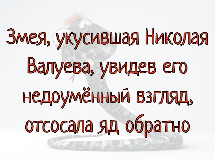 — Его змея укусила! — сразу объявила девушка, тыча пальцем в «красноносого». — Гадюка! Прямо в лицо! Она в траве ползала, а Дима думал, веревка какая-то, поднял посмотреть, а та его - цап!