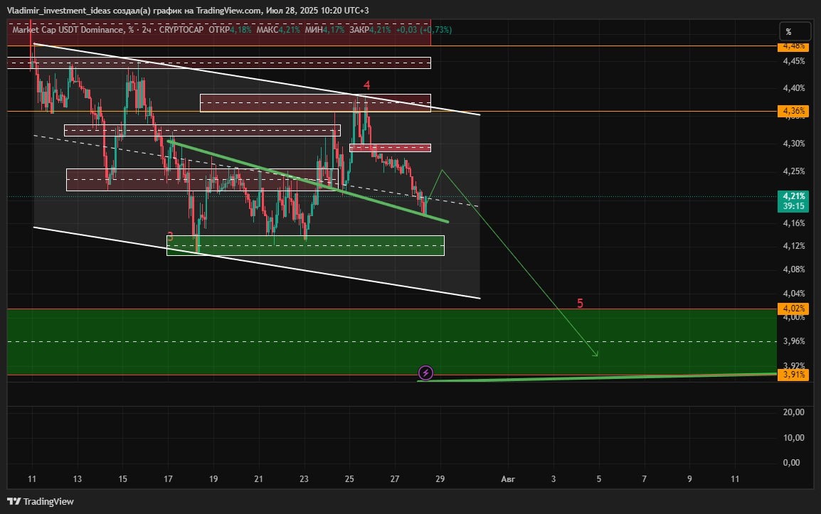 Продолжаю удерживать лонг позиции, еще есть куда падать #USDT.D, а это полная противоположность битка.