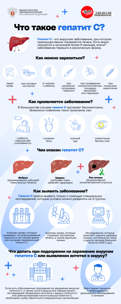 #гепатитС #простоОсложном Всемирный день борьбы с гепатитом ❓ Как можно заразиться вирусом гепатита С? ➡️ Вирус гепатита С находится в большом количестве в крови и других биологических жидкостях инфицированного человека. Заражение чаще всего происходит, когда кровь инфицированного человека попадает в кровь или на поврежденную кожу (слизистые оболочки) другого человека. Наиболее высокий риск инфицирования вирусом гепатита С у людей, употребляющих инъекционные наркотики. Инфицирование возможно при нанесении татуировок, пирсинге, проведении косметологических процедур, маникюра или педикюра, если в салонах используются нестерильные иглы или другие инструменты. В домашних условиях заразиться можно при использовании общих бритв (с лезвиями), маникюрных (педикюрных) принадлежностей с другими членами семьи. Частицы крови могут оставаться на поверхности инструментов, и в случае микротравм вирус может попасть в ранку и вызвать заболевание. Вирус гепатита С передается половым путем и от инфици