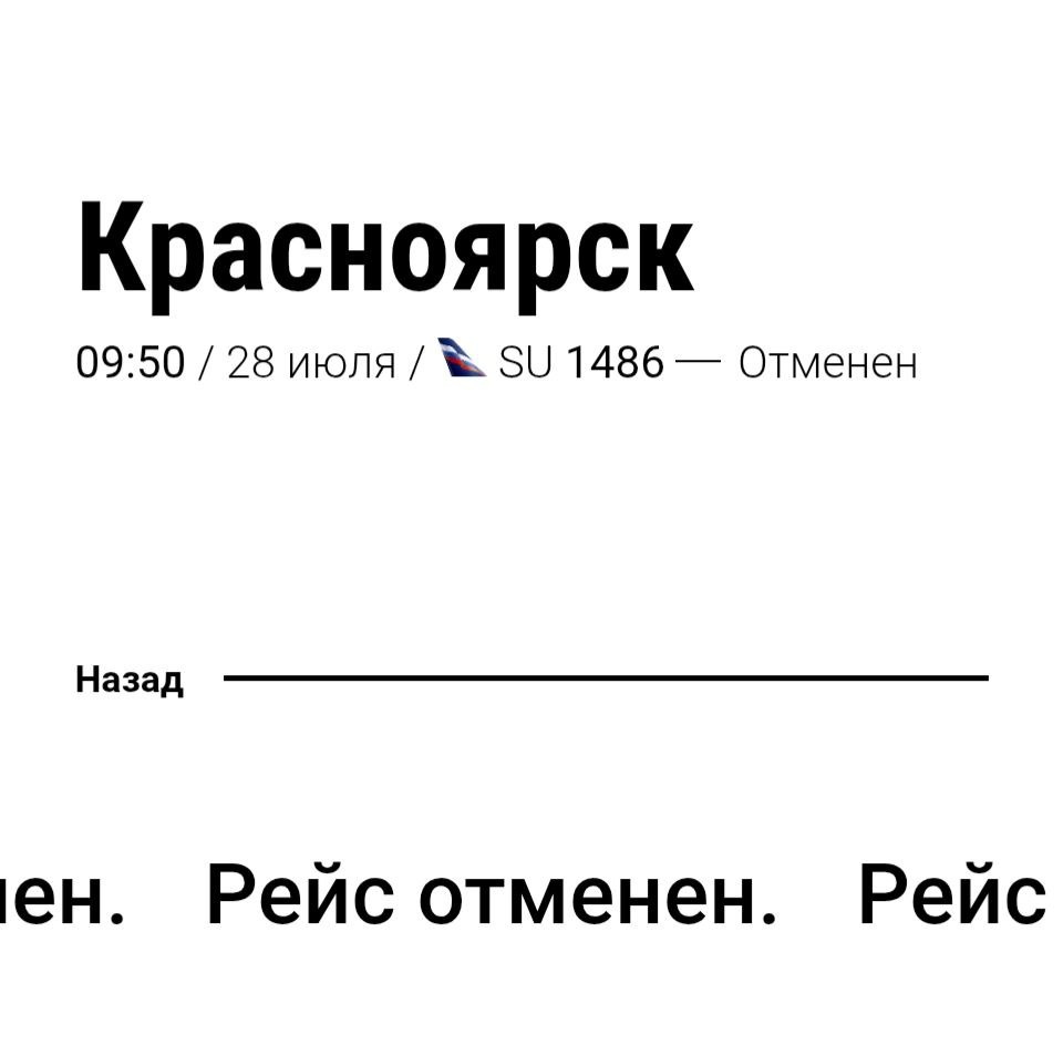 Вниманию пассажиров рейса авиакомпании "Аэрофлот" SU 1486/1487 Москва - Красноярск - Москва. Авиакомпания отменила рейс из-за массового сбоя в операционной системе.