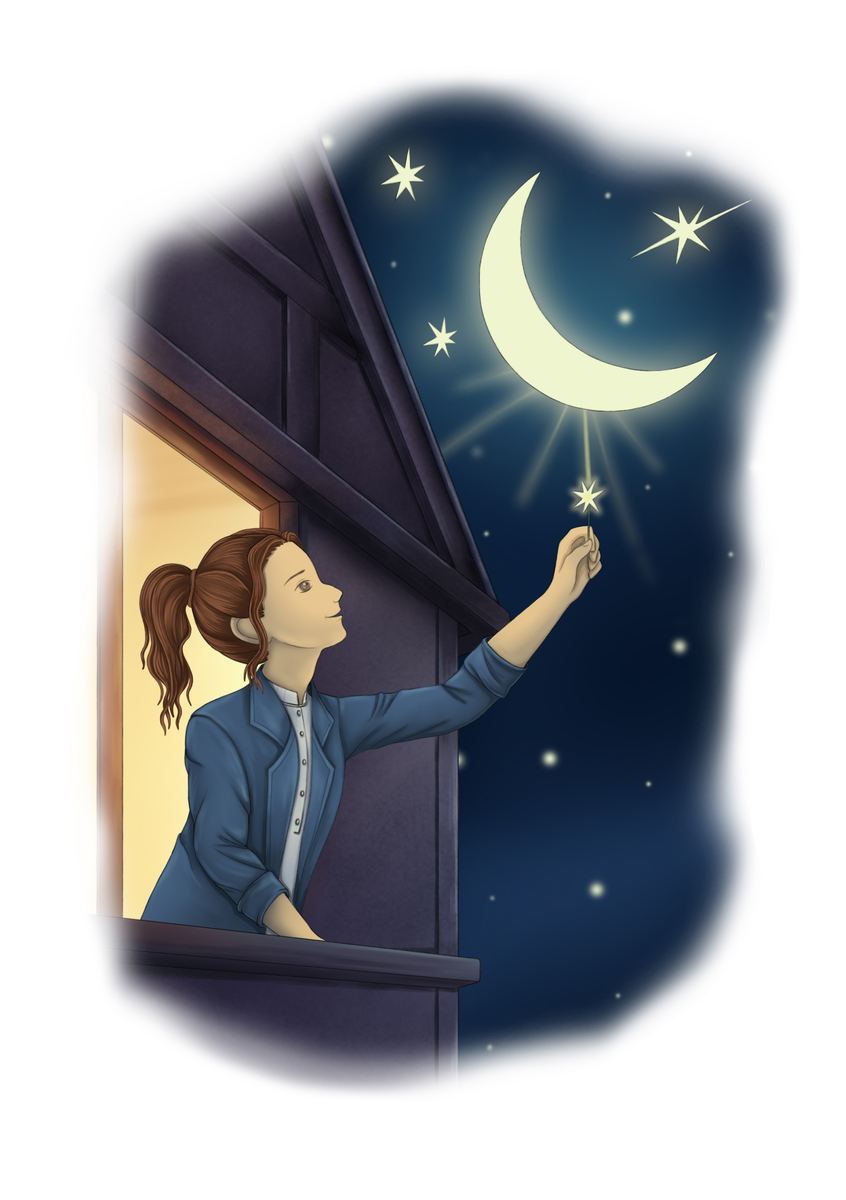 Дэкон достал одну из звездочек фолианта. Она оказалась прикреплена на специальный крошечный штырек. Он положил её в центр правой ладони и подошел к окну, распахнул его настежь. На небе сиял тоненький серп месяца. Парен поднял левую руку и направил её на луну. Мгновение ничего не происходило, а потом лунный свет собрался в узкую линию и устремился к его руке. Несколько секунд Дэкон стоял без движения, а потом слегка сжал ладонь и протянул её Вэйт. На ней лежал крошечный светящийся шарик.