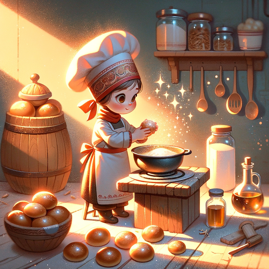 "Лёвушка, мой маленький поварёнок" — говорила она, вытирая муку с его щёк. — "Однажды ты станешь великим поваром. Я это точно знаю! Ведь ты готовишь не только руками, но и своим добрым сердцем."
