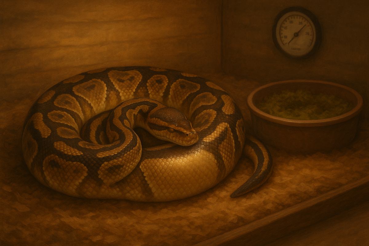 Самка королевского питона после успешного спаривания — это уже не просто змея. Это потенциальная мама, и всё её поведение теперь подчинено подготовке к будущей кладке.