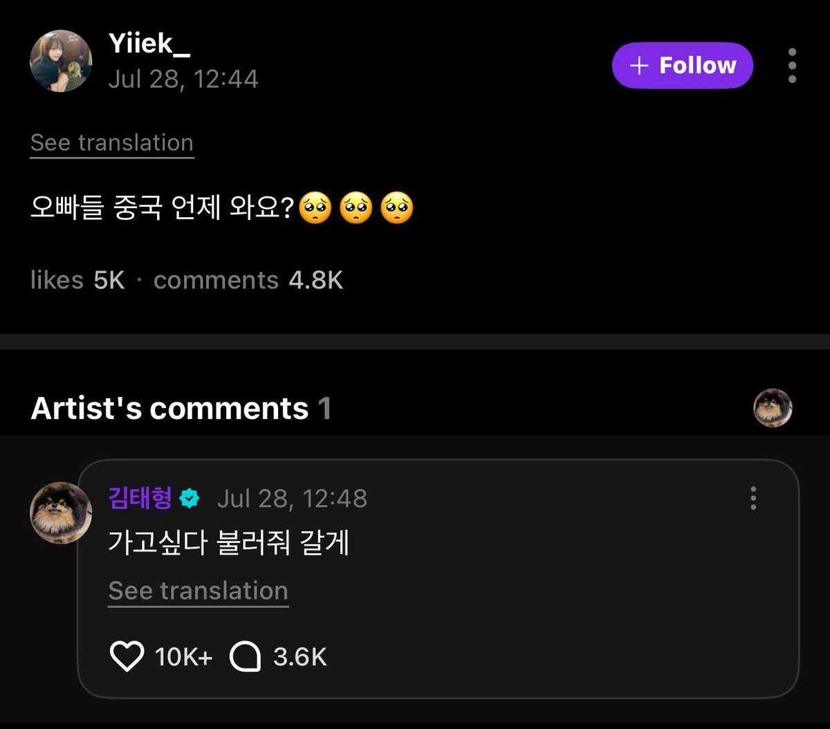 Арми: Оппы, когда вы приедете в Китай? 🥺🥺🥺