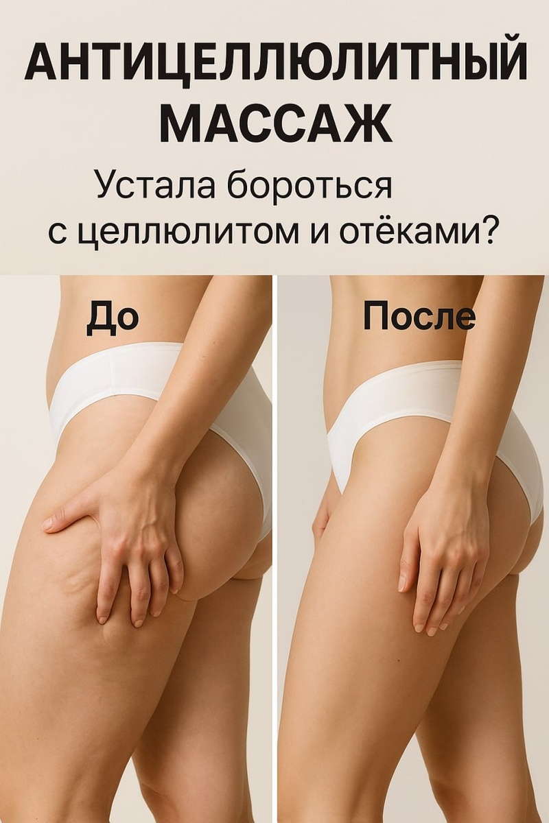 🥵 Устала бороться с целлюлитом и отёками? Попробуй антицеллюлитный массаж — процедура, которая избавит от «проблемных зон» . 🔥 Только до конца недели в Тюмени: 💆♀️ Антицеллюлитный массаж (80 мин) + лимфодренаж в подарок! 💬 Подпишись в Telegram — получи консультацию бесплатно 💸 Всего 2 900 ₽ вместо 4 500 📲 Не теряй время, пока лето! ✨ Результат уже после первой процедуры — проверено на себе и десятках довольных тюменок! 🔻 Осталось 5 мест по акции — пиши ЛЕТО прямо сейчас https://t.me/valechka893