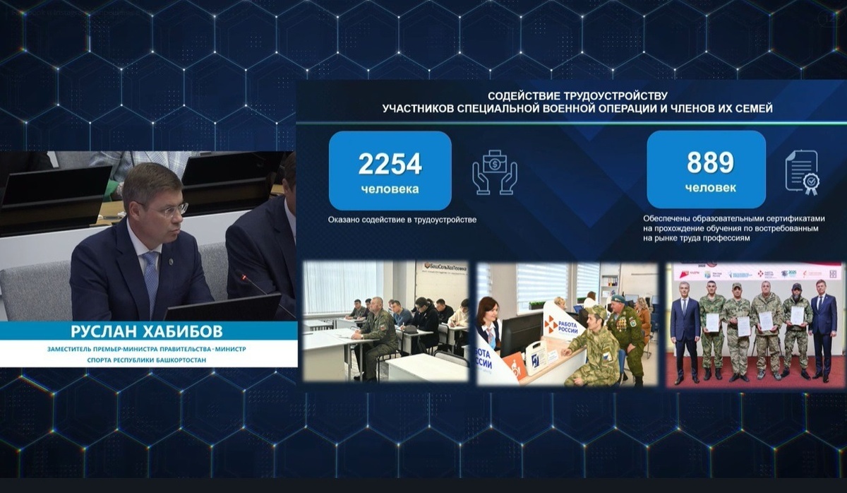 Семьи участников спецоперации должны получать всемерную государственную поддержку. Об этом сегодня на оперативном совещании правительства в ЦУРе заявил заместитель премьер-министра правительства Башкирии — министр спорта Руслан Хабибов. На сегодняшний день в республике действуют 54 региональные меры поддержки участников СВО и их родных, которые охватывают практически все сферы жизни. Вернувшимся с фронта бойцам важно решить вопрос трудоустройства, сказал Руслан Хабибов. По его словам, за содействием в поисках работы в центры занятости обратилось 565 участников спецоперации, из которых трудоустроились 278 фронтовиков. Образовательные сертификаты получили 197 участников спецоперации. Порядка 87% прошедших обучение впоследствии нашли работу. «Центры занятости республики ведут работу по трудоустройству участников спецоперации и членов их семей в проактивном режиме. При этом работаем со всеми ветеранами, о которых нам поступает информация, а не только с теми, кто обратился к нам. За каждым