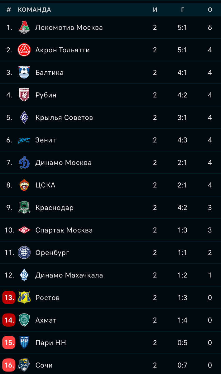 Итоги второго тура Российской Премьер-Лиги сезона-2025/2026