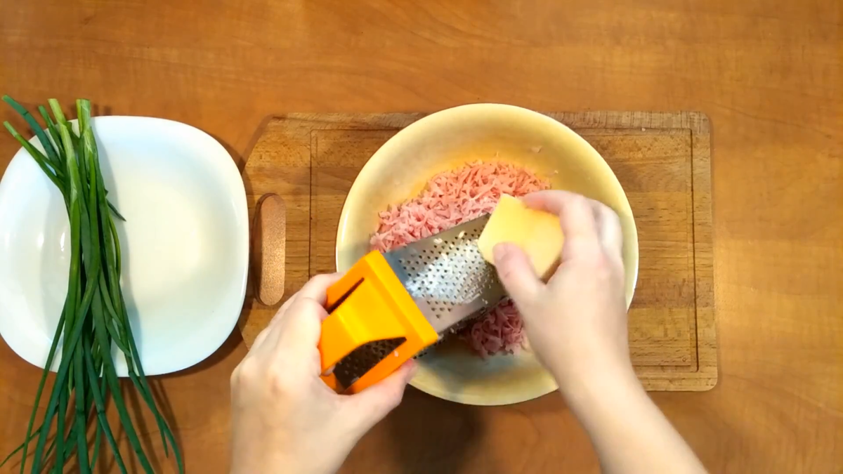 Дорогие друзья, большой-большой привет! Сегодня мы приготовим очень вкусную, быструю и ароматную закуску для всей семьи. Она отлично подойдёт как для завтрака, так и, например, для пикника. В качестве начинки будем использовать сыр, ветчину и зелёный лук, но, конечно же, начинка может быть абсолютно любой. Можно взять курицу с сыром и луком или просто сыр с зеленью — всё на ваш вкус! Сначала подготовим начинку. На крупной тёрке натрём ветчину, а на мелкой — сыр. Зелёный лук мелко нарежем. Теперь перемешаем всё в миске — наша начинка готова! Теперь возьмём две пачки творога. Хорошенько посолим его, добавим чёрный молотый перец Один-два зубчика чеснока (у меня попался очень крупный, поэтому я разрежу его пополам). Выдавим чеснок через пресс. Добавим одно некрупное яйцо. Кстати, можно обойтись и без яйца — тогда в тесто понадобится меньше муки. Я обычно готовлю сырники без яиц, и они отлично получаются, особенно если запекать их в духовке. Но сегодня мы всё-таки добавим яйцо. Перемешаем.