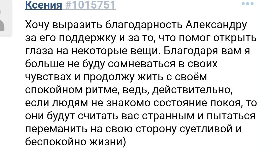 Когда твоя уверенность — это вызов миру 🌿 Бывает, человек сомневается в себе не потому, что он «неправ», а потому что его спокойствие и самодостаточность становятся неудобными для других. Давление окружения — не всегда признак твоей ошибки. Иногда это реакция на твою устойчивость, на то, что ты не играешь по чужим правилам. И если сначала это вызывает недоумение — значит, ты движешься в верном направлении. Этот отзыв — как раз о таком моменте: когда внешне всё «нормально», но окружающим почему-то хочется эту «норму» пошатнуть. Важно не втягиваться, а сохранять внутренний покой и просто наблюдать. Тишина — тоже ответ. 🔥 Контакты для записи на консультацию 📞 Телефон: 89885420453 📍 Очные сессии: Ростов-на-Дону, центр (Ивановского, 38) 💻 Онлайн: WhatsApp / Telegram 📝 Анкета на B17: [b17.ru/alex_rodin](https://b17.ru/alex_rodin) P.S. Если ты узнал себя в этом тексте — скорее всего, ты на правильном пути. А если нужна поддержка — всегда рад помочь.