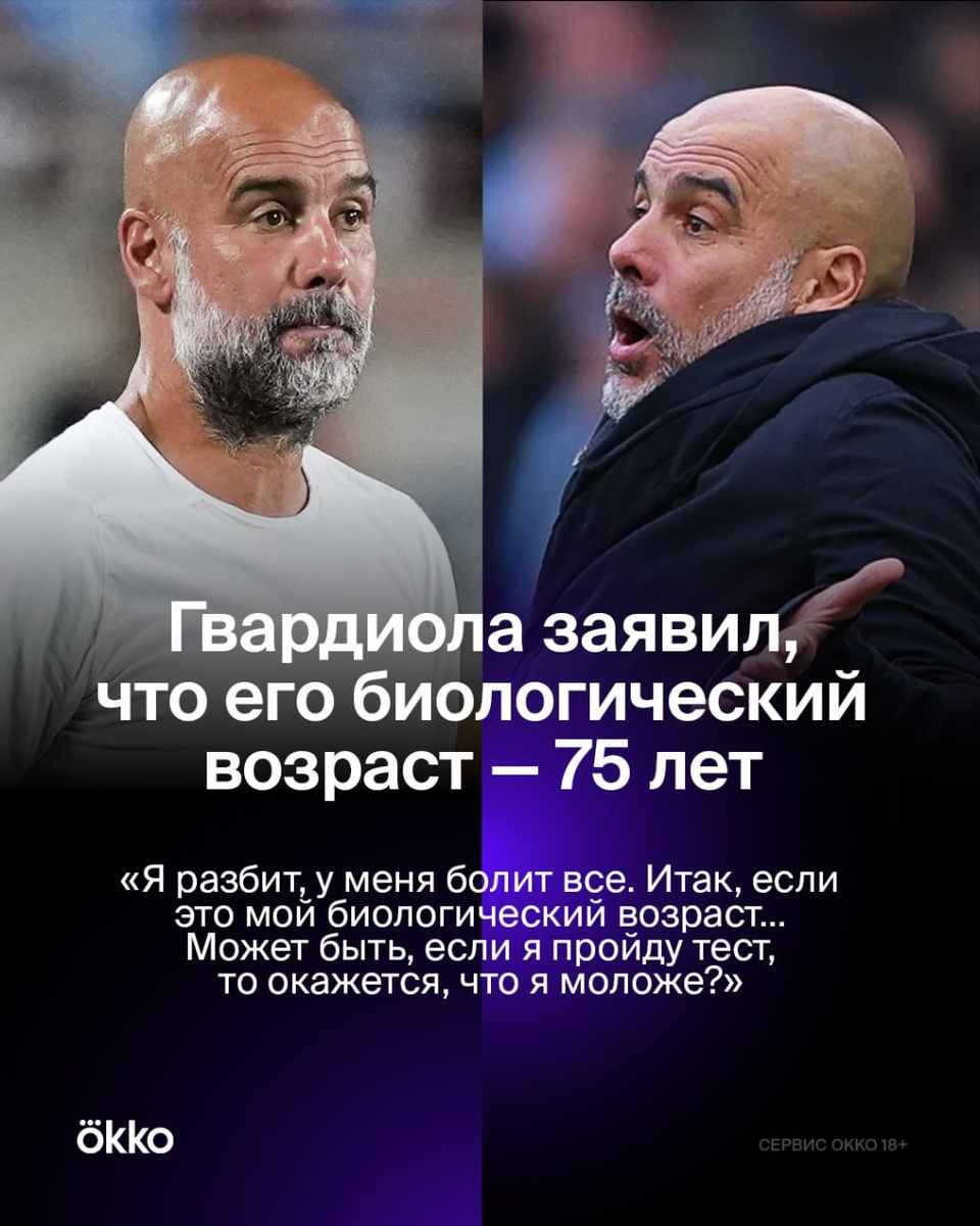 Пеп — дед: Гвардиола заявил, что его биологический возраст равен 75 годам 👴