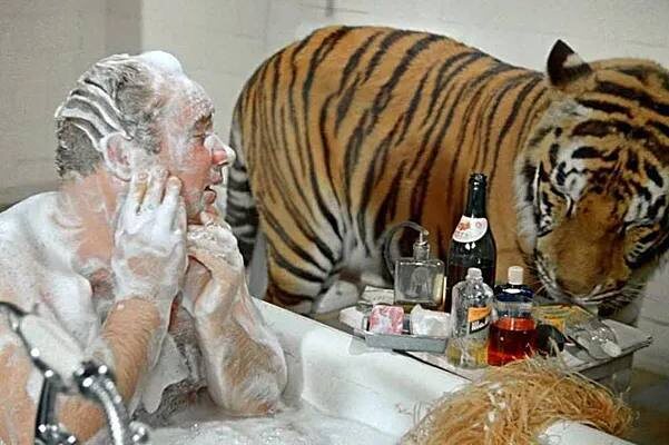 Евгений Леонов долго отказывался от роли именно из-за сцен с тигром. Его можно понять: кто бы согласился купаться в ванне, зная, что в комнате — живой хищник?