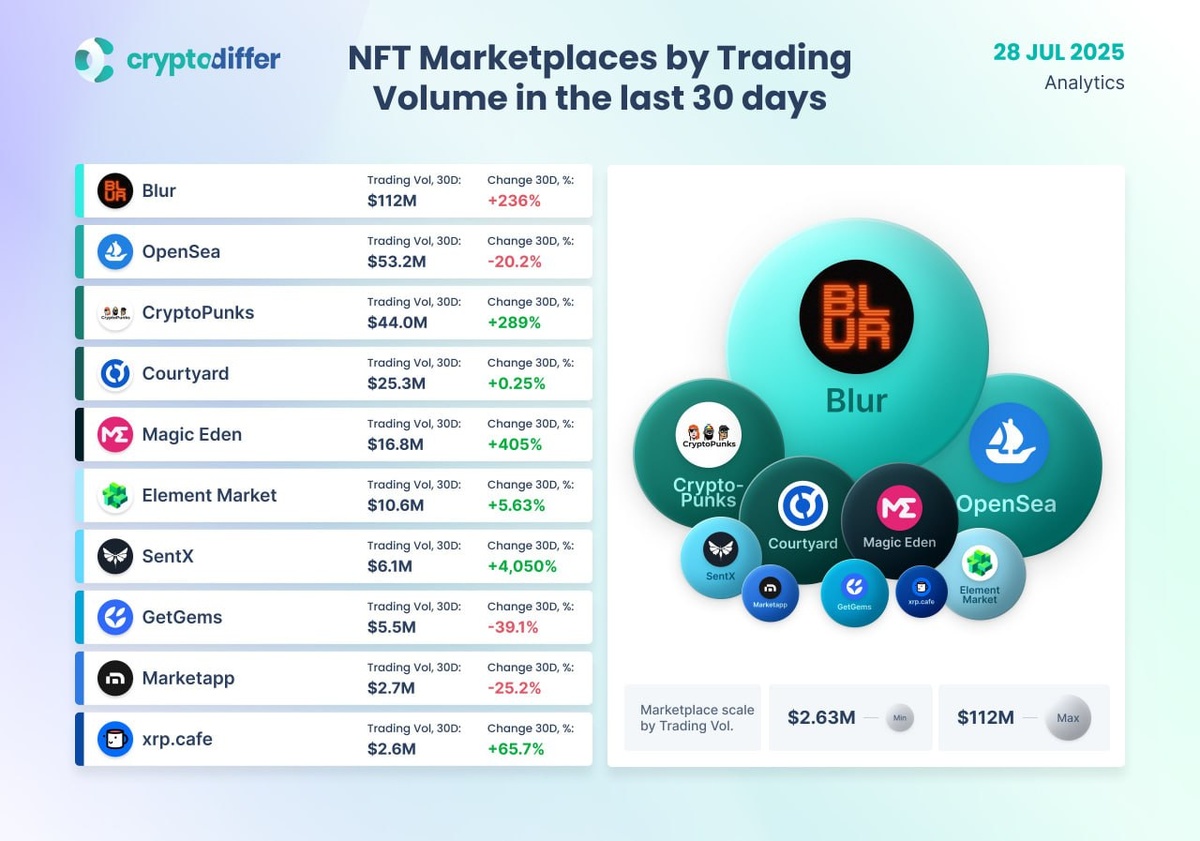 πΈΠ’ΠΎΠΏ NFT-ΠΌΠ°ΡΠΊΠ΅ΡΠΏΠ»Π΅ΠΉΡΠΎΠ² ΠΏΠΎ ΠΎΠ±ΡΠ΅ΠΌΡ ΡΠΎΡΠ³ΠΎΠ² Π·Π° ΠΏΠΎΡΠ»Π΅Π΄Π½ΠΈΠ΅ 30 Π΄Π½Π΅ΠΉ