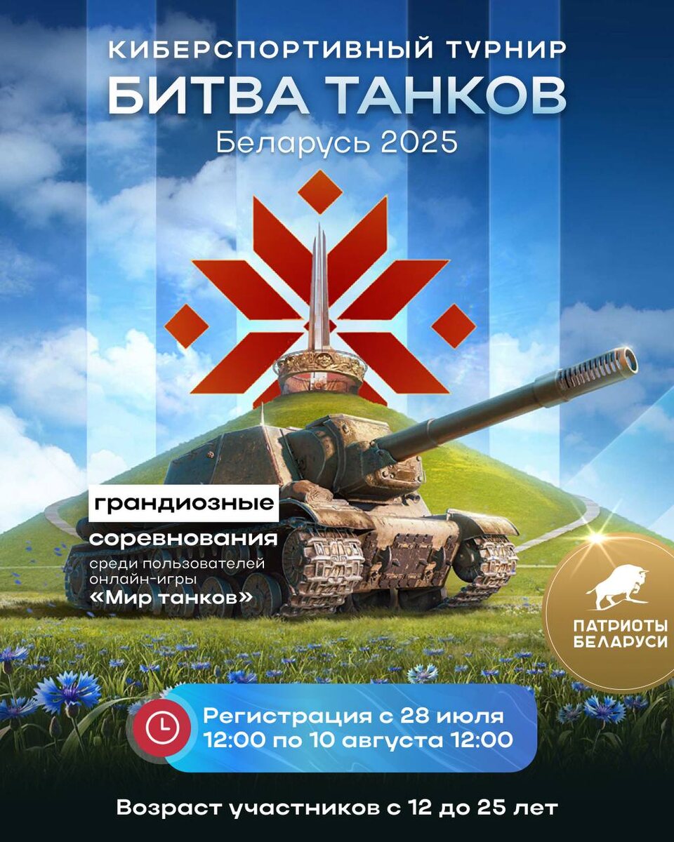 "Патриоты Беларуси" объявили о старте киберспортивного турнира «Битва танков. Беларусь 2025». Рассказываем, как принять участие TikTok | VK | OK | Instagram | Сайт| Прислать новость