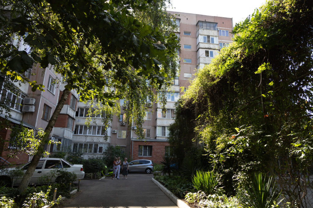 От улицы Ставропольской, загруженной и пыльной, отделяет всего один поворот, и ты попадаешь в совершенно другой мир: тихий, зеленый, ухоженный. Настоящий оазис, который держится на энтузиазме нескольких женщин и мужчин. Тут не сорят, не бросают окурки и даже разговаривают негромко, чтобы не потревожить тень от юкки и жасмина. Раньше здесь машины стояли прямо на клумбах. Мы все убрали, землю завезли, сами раскидали, сами засадили. Теперь, видите, и юкка, и розы, и плющ — его семь лет назад черенками из Крыма привезли, — говорит Вера Серенко, старшая по дому. За последний год, как отмечают соседи, Вера Николаевна сделала для двора больше, чем предыдущие старшие за 10 лет. И это заметно: в палисадниках нет сорняков, на клумбах следы недавнего полива, вдоль тропинок аккуратно подстриженные кусты. Под окнами подъездов — ромашки, ирисы и яблони. Раньше было много проблем. И с бездомными, и с вандалами. Они цветы на клумбах срывали, заходили за угол дома и продавали. Мы снова сажали. Потом