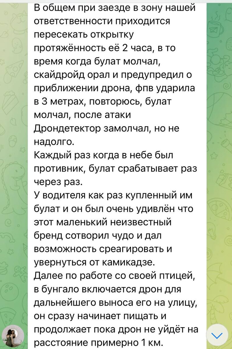 🚨СРОЧНЫЙ СБОР: Два детектора дронов для защиты наших ребят СВОи, нужна ваша помощь! После успешной передачи первого детектора дронов Адаму, стало ясно — эти приборы спасают лучше дорогостоящих аналогов. Теперь нужно выкупить два детектора: 🔹 Первый детектор — 34 000 рублей (покупаем из наличия для срочной передачи) 🔹 Второй детектор — 32 000 рублей (заказной, цена ниже за счёт предзаказа) Итого: 66 000 рублей Отзыв от Адама о переданном детекторе: " При заезде в зону ответственности пришлось пересекать открытку — 2 часа пути. Когда обычный детектор молчал, наш SkyDroid орал и предупредил о приближении дрона. ФПВ ударила в 3 метрах! Водитель был удивлён, что этот маленький неизвестный бренд сотворил чудо и дал возможность среагировать и увернуться от камикадзе. Аппарат надёжный и будет сохранять жизни." Каждый детектор — это спасённая жизнь. Помогите нашим парням услышать опасность раньше врага! 💳 Т-Банк: 2200701225452439 📱 СБП: 89936125765 @СВОи - ВСЁ ДЛЯ ПОБЕДЫ