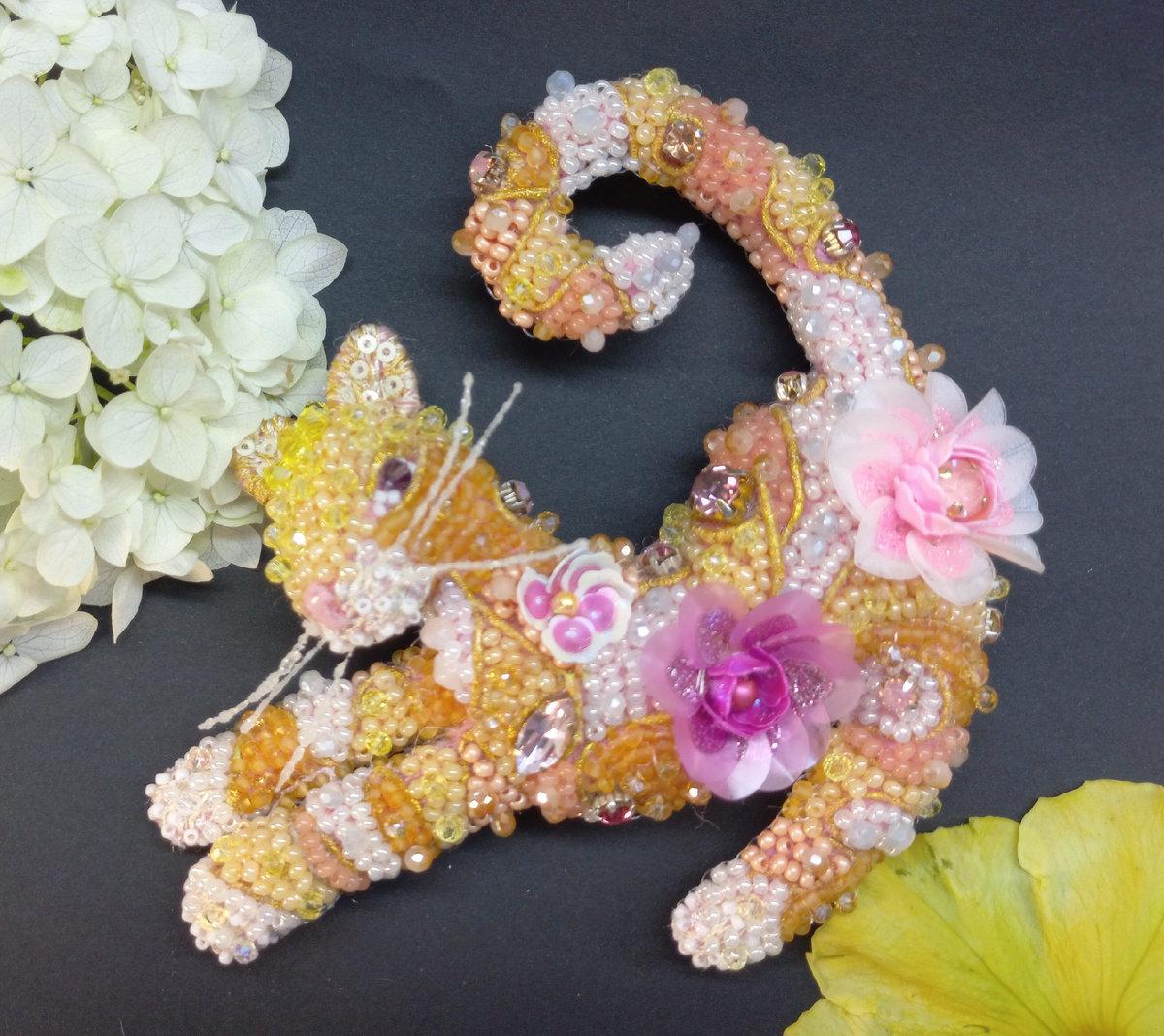 Данная брошь представляет собой миниатюрное произведение искусства, посвященное образу очаровательного пушистого питомца.
