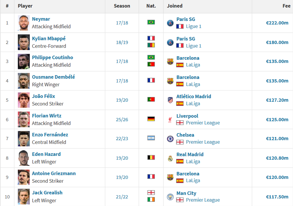 🤑 Топ-10 самых дорогих трансферов в истории с учетом инфляции. Неймар в «ПСЖ» только второй 🤯