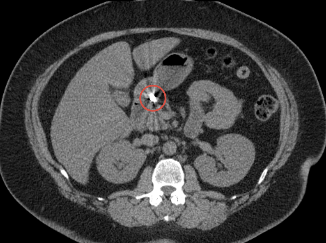 На прошлой неделе в отделение экстренной помощи Ильинской больницы обратился пациент, который за час до поступления проглотил инородное тело — зубной имплантат со штифтом во время еды. При поступлении сразу была выполнена КТ органов грудной клетки и брюшной полости: имплантат уже находился в пилорическом отделе желудка и не вызывал симптомов. В данном случае была выбрана выжидательная тактика, поскольку проглоченное инородное тело обладало следующими характеристиками: Через 6 суток после поступления инородное тело самостоятельно вышло естественным путём, пациент чувствовал себя удовлетворительно. Важно помнить, что данные критерии не применимы к магнитам и батарейкам, которые требуют немедленного эндоскопического удаления!