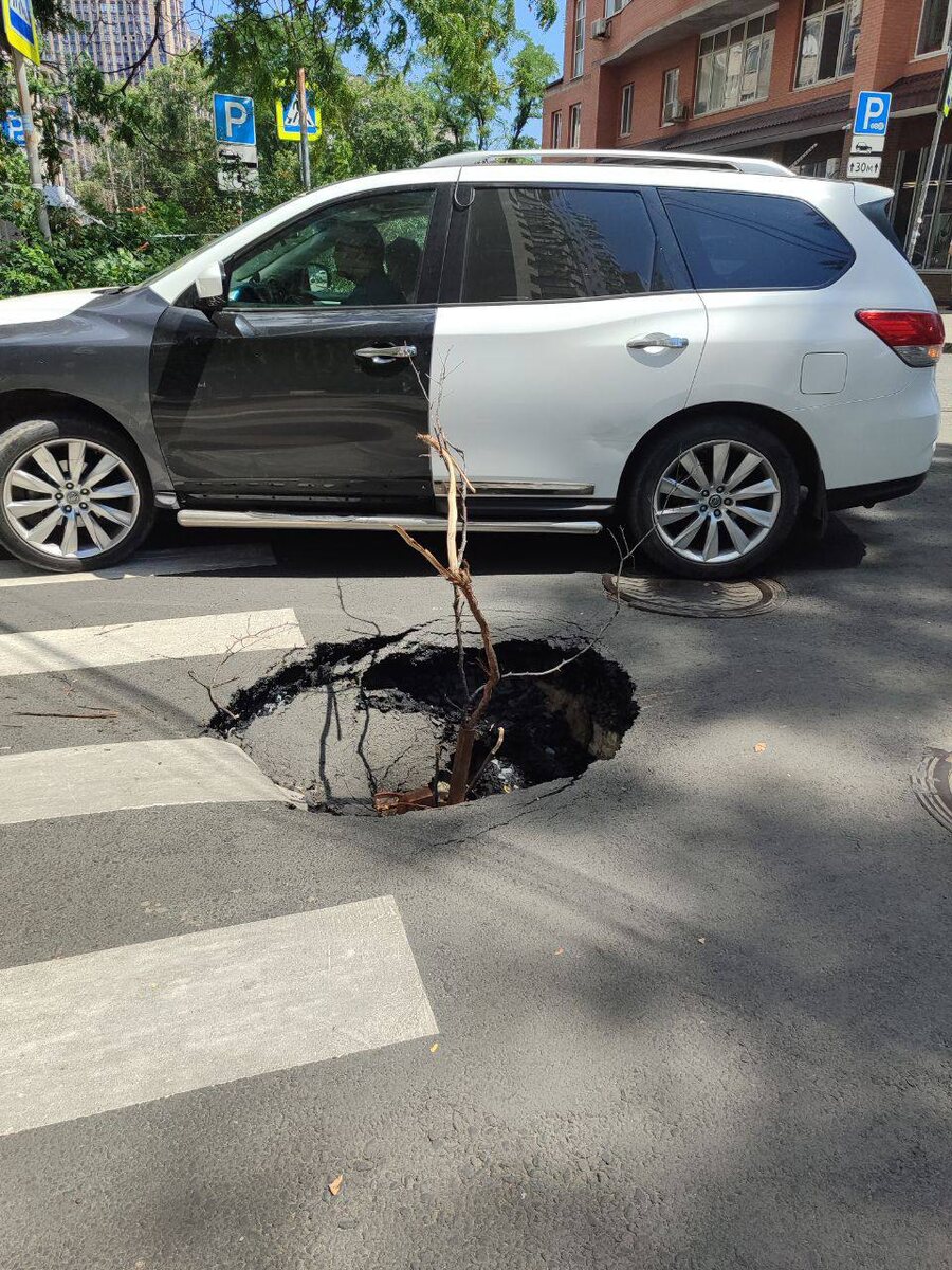 Ростовчане пожаловались на огромную яму на пересечении улиц Города Волос/Журавлёва Яму пообещали заделать до 29 июля. 👉🏻Новости №1 в Ростове 💌Прислать новость/фото
