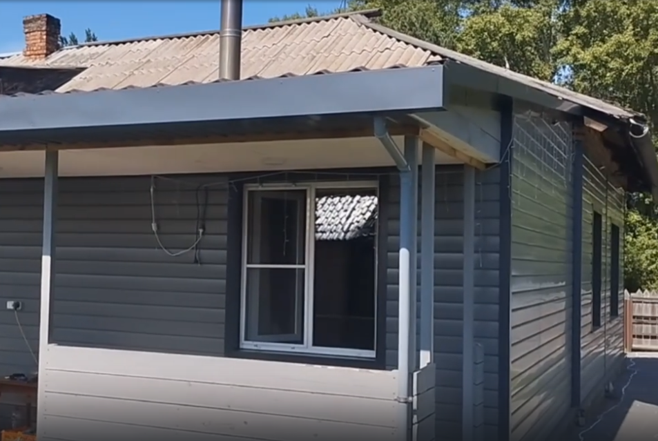 В конце прошлого строительного сезона едва успел сделать террасу, увеличив в размерах импровизированное временное крыльцо после пристраивания 28 квадратных метров пристройки, да так и не успел закончить фронтон крыши: добавочный материал, металлочерепицу, мне вначале неверно изготовили, затем тянули с заменой, а затем начались морозцы и другие срочные задачи...