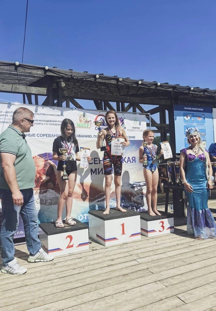 🏁🔥 Воспитанница отделения плавания КСШОР им. Трефилова Алексеева Аврора успешно выступила на соревнованиях «Сенежская Миля», посвящённых Дню ВМФ.