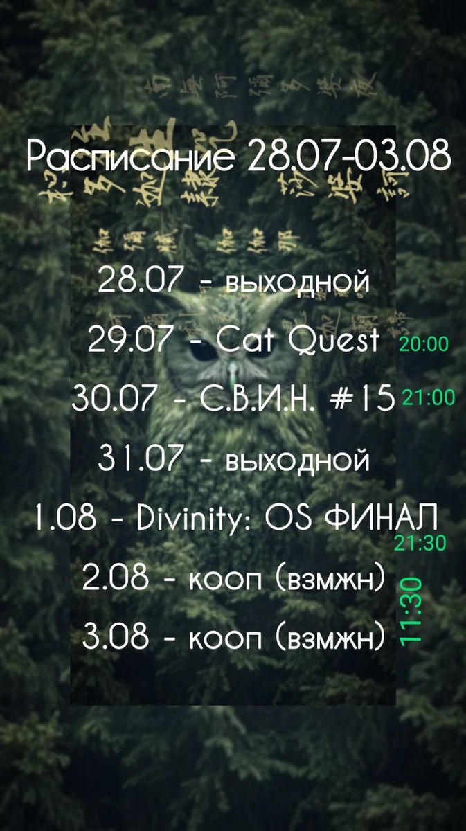 Значится, расписанице на недельку вышло, по выходным у нас получается подвешено, изменения будут сообщены дополнительно