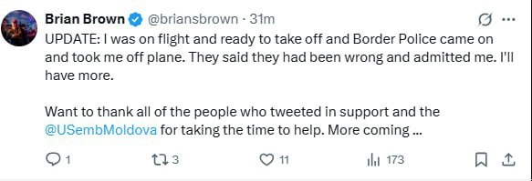 🇲🇩Пограничный пинг-понг: Брайана Брауна всё-таки впустили в Молдову