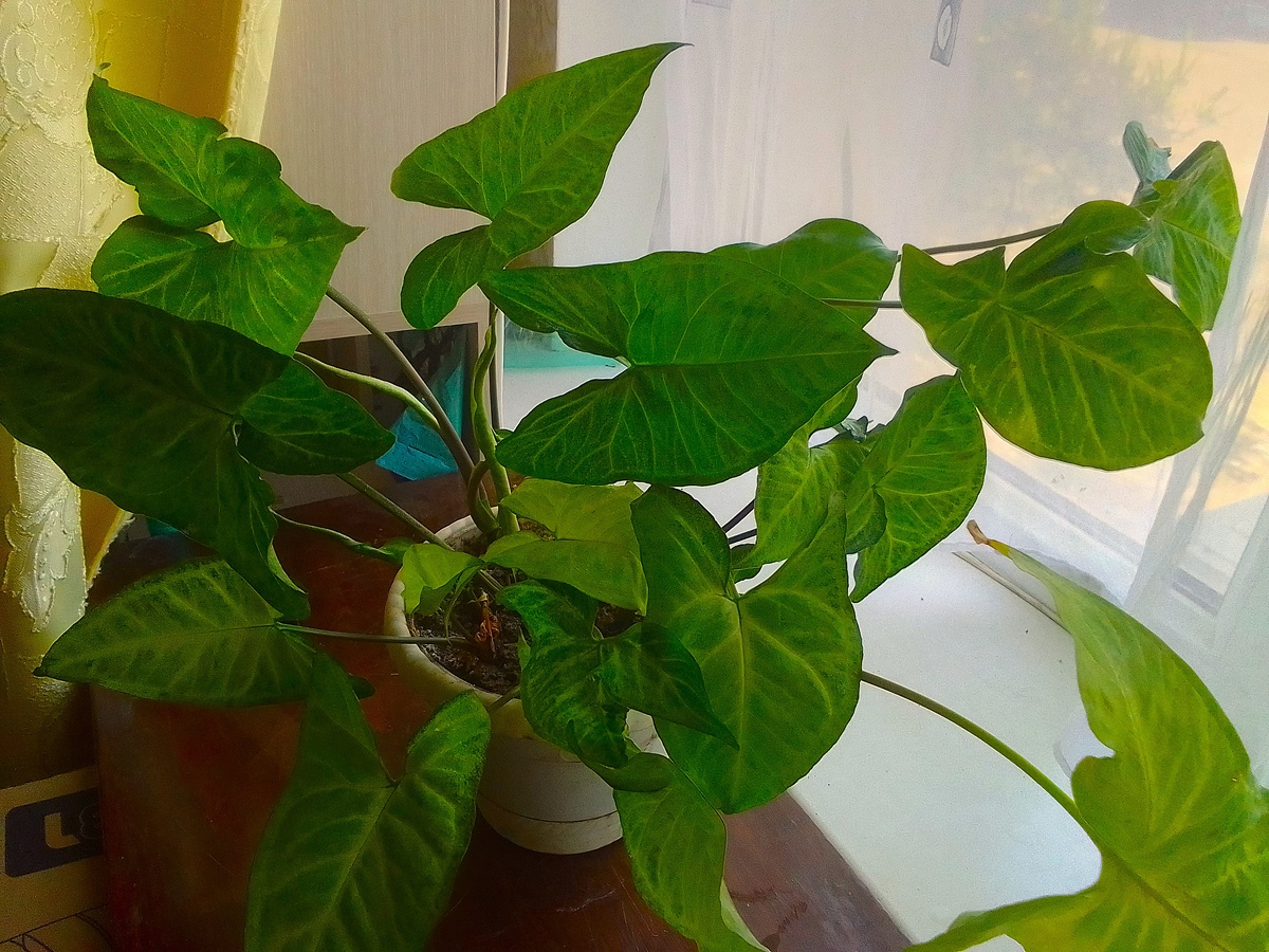 На зимний период освещение для сингониумов лучше увеличить, переставляя их ближе к окну или в помещения с более ярким освещением.