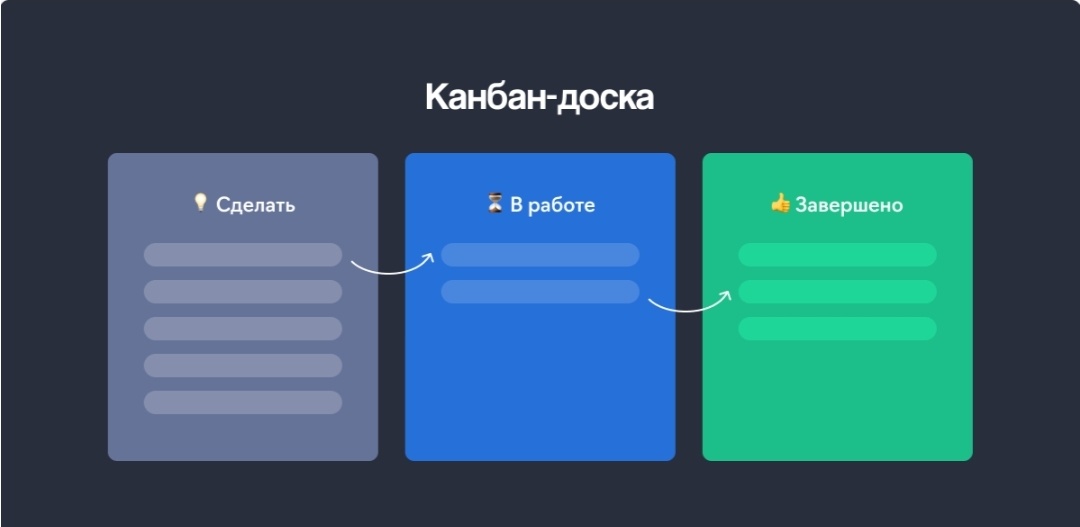 Канбан — это метод управления рабочим процессом, который помогает не только компаниям, но и отдельным людям организовать свою деятельность. Изначально разработанный для производства, сегодня Канбан успешно применяют в IT, маркетинге, домашнем хозяйстве и личном планировании. Метод Канбан строится на нескольких ключевых идеях: Все задачи отображаются на специальной доске, разделенной на столбцы (например: «Сделать», «В работе», «Выполнено»). Система не позволяет перегружать себя, устанавливая лимиты на число одновременно выполняемых дел. Анализ движения задач помогает оптимизировать процесс и сокращать сроки выполнения. Регулярный анализ и небольшие корректировки делают процесс эффективнее. Классическая Канбан-доска: | Идеи | Сделать | В работе | Готово| Программы для создания Канбан-досок: - приложение Trello; - приложение Asana; - приложение Kanbanize. Также можно сделать доску со стикерами на холодильнике. Преимущества: ✅ наглядность всех задач; ✅ за