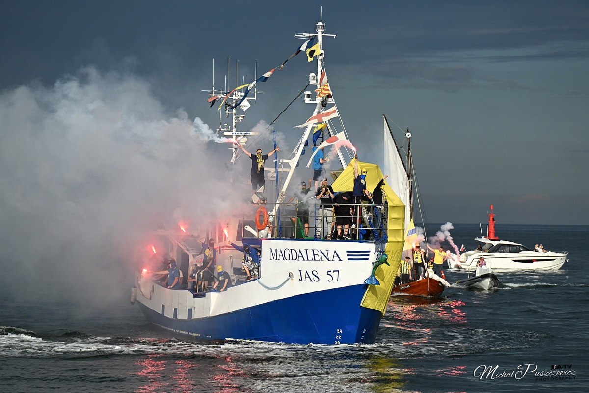 Piłka Nożna – телеграмм канал о польском футболе на русском языке. Здесь Вы сможете узнать самые свежие новости из польского футбола, мысли автора о прошедших матчах, прогнозы на матчи Экстракласы и многое другое. «Арка» из Гдыни вернулась в польскую Экстракласу спустя пять лет выступлений во втором дивизионе. В первом туре «желто-синие» на выезде уступили «Мотору», а во втором туре дома принимали «Радомяк». Часть болельщиков «Арки», проживающих на Хельской косе, решила нестандартным способом отправится на матч с радомцами. За несколько дней до матча фан-клуб «Арки» из небольшого города Ястарня, который находится на полуострове, предложил местным болельщикам «желто-синих» отправиться на первый домашний матч своих любимцев по воде. Этим фанаты желали подчеркнуть связь себя и клуба с морем. В клубе также заботятся о традициях. На домашнюю форму «Арки» нового сезона были нанесены тесненные изображения якоря. Стоимость путешествия на матч в Гдыню на рыбацкой лодке «Магдалена» составила сто
