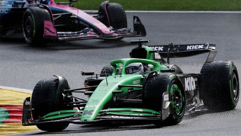 Нико Хюлкенберг был близок к тому, чтобы заработать очко для «Sauber» на Гран-при Бельгии, но в итоге финишировал лишь двенадцатым: решающий момент — второй пит-стоп за 12 кругов до финиша, который, как оказалось позже, был стратегической ошибкой. «В каком-то смысле, я был вынужден его сделать», — сказал Хюлкенберг после гонки, объясняя, почему он не выбрал стратегию с одним пит-стопом. «Мои передние шины сильно изнашивались, у меня была сильная недостаточная поворачиваемость, и я всё чаще блокировал переднее колесо. Не думаю, что я бы смог опережать Пьера и остальных». Если посмотреть на время круга перед вторым пит-стопом, то можно увидеть явную тенденцию к снижению. На 26-м круге немец установил свой лучший круг на первом среднем отрезке — 1.47,656. Незадолго до замены шин на 31-м круге он был почти на секунду медленнее. Его напарник Габриэль Бортолето, напротив, в этот момент показывал результат 1.47. «Sauber» выбрал более высокую прижимную силу, что, по словам Хюлкенберга, было не