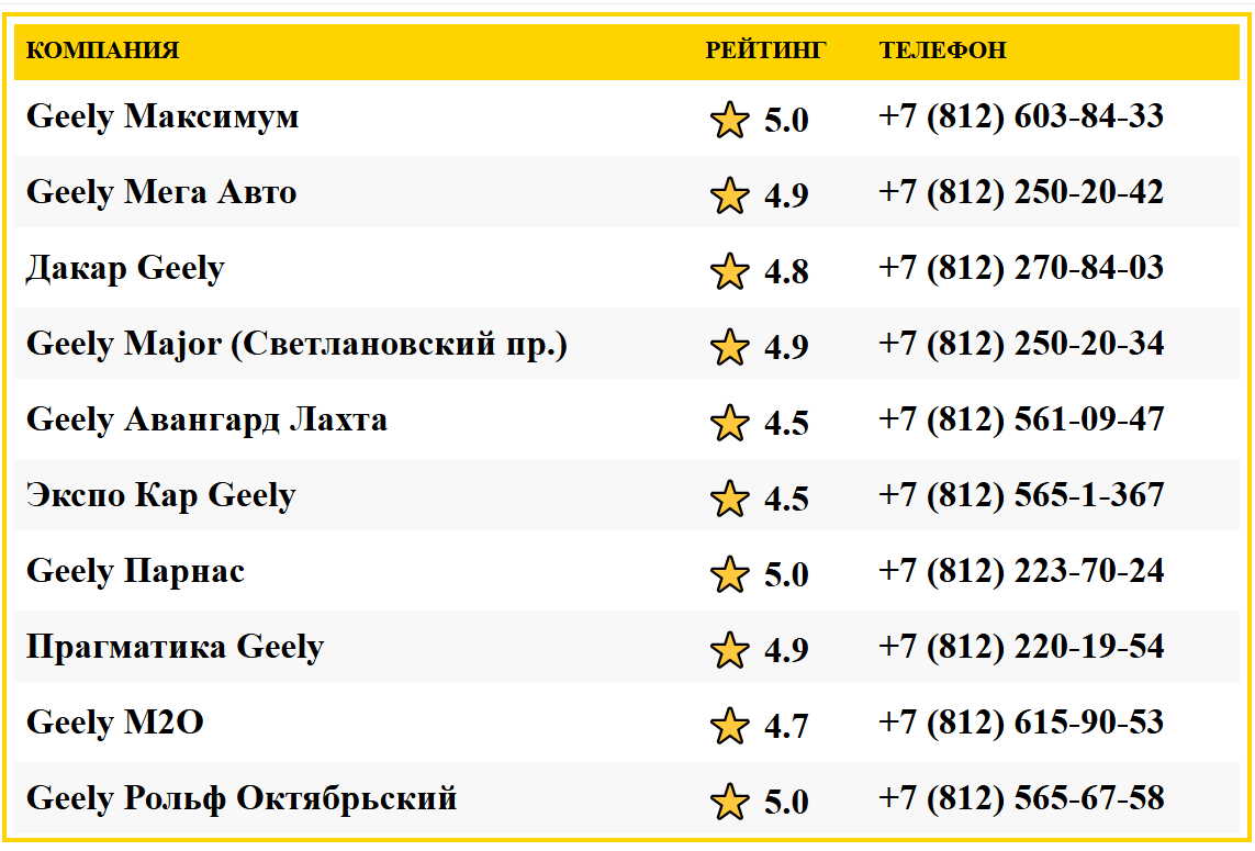Рейтинг лучших дилеров Geely в СПБ (топ 10)