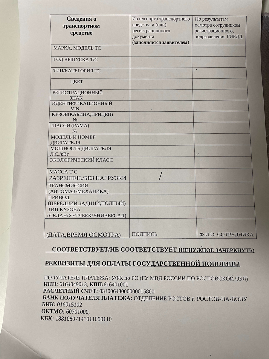 Всем привет! После 2 декабря появилась возможность для владельцев авто из ДНР, ЛНР, Херсонской и Запорожской областей поставить свою машину на учет РФ (постановление правительства РФ №2216 от 02.12.2022). Я сперва решил не спешить и дождаться, пока все наладят, но недавно знакомый за 1 день все сделал в Ростове на Дону и после новогодних праздников записался в МРЭО. Далее распишу порядок действий, может кому-то поможет. 1. Первым делом нам необходимо пройти осмотр транспортного средства на соответствие указанным данным. Для этого берем в МРЭО бланк и заполняем его данными из нашего тех паспорта. Заполнил все что было в тех паспорте и поехал на осмотр в бокс на територии МРЭО. Наличие страховки ОСАГО — Обязательно! Предьявляем сотруднику заполненный бланк, техпаспорт, паспорт РФ, паспорт ДНР/ЛНР/Украины, страховку. Тут у меня была первая и единственная проблема — нужно было заполнить модель и номер двигателя. В техпаспорте этой информации нет. Сверху под пластиковой крышкой есть наклейк