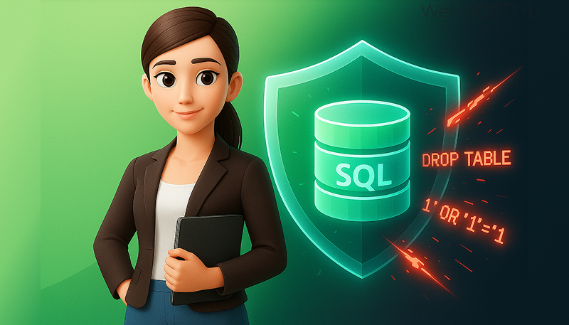 Вы создали веб-приложение, запустили его, всё работает. Пользователи довольны, база растёт. И вдруг — сайт перестаёт отвечать, а в логах фигурирует команда DROP TABLE. Это значит одно: проект стал жертвой SQL-инъекции. Этот тип атаки остаётся одной из самых опасных уязвимостей в веб-разработке. Один некорректно обработанный ввод — и злоумышленник может не просто просмотреть данные, а стереть их полностью или получить доступ к другим таблицам. Разберёмся, как защититься. SQL-инъекция — это способ внедрения вредоносных SQL-команд через поля ввода. Например, в форму поиска книги пользователь вводит ID. Запрос выглядит так: SELECT * FROM books WHERE id = 'ID'; Если вместо числа ввести строку 42'; DROP TABLE books; --, сервер воспримет это как два отдельных запроса: сначала выборка книги, а затем удаление таблицы. Всё, что идёт после --, считается комментарием и игнорируется. Так одной строкой можно уничтожить всю базу. Основной метод защиты — использование параметризованных запросов. В