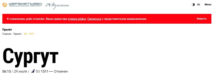 Авиакомпания «Аэрофлот» приняла решение отменить рейс из Москвы в Сургут, запланированный к вылету в 21:40. Обратный рейс (запланированный на 06:15 29 июля) также отменен. Об этом сообщается на сайте аэропорта «Шереметьево». Национальный перевозчик вынужденно корректирует свое расписание в связи с крупнейшим сбоем. Он произошел в работе информационных систем авиакомпании. По неподтвержденным данным, ИТ-инфраструктура авиакомпании подверглась хакерской атаке, в результате которой работа «Аэрофлота» оказалась парализована, а многие данные оказались уничтожены. Московская межрегиональная транспортная прокуратура начала проверку обстоятельств масштабного сбоя в информационных системах «Аэрофлота». – В настоящее время команда специалистов работает над минимизацией рисков выполнения производственного плана полетов и скорейшего восстановления работы штатной работы сервисов. Пассажирам отменённых рейсов доступны: возврат денежных средств или переоформление на рейсы в ближайшие 10 дней. Обратит