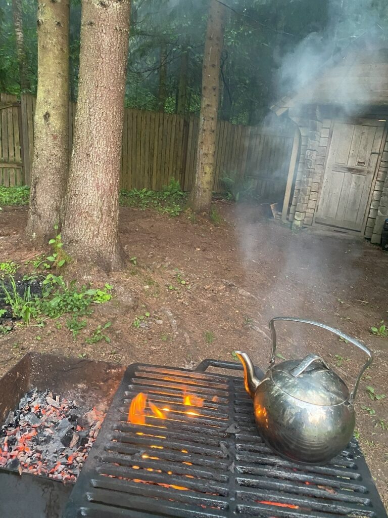 Основная грань, которую мне было трудно уловить – когда происходит трансценденция в состояние жизни вокруг уличной кухни. Маршрут, пролегающий между холодильником, огнем и водопроводом занимает некоторое время, поэтому пришлось научиться брать максимум необходимых продуктов и инструментов за одну ходку, чтобы потом ни за чем, ругаясь, не бегать.