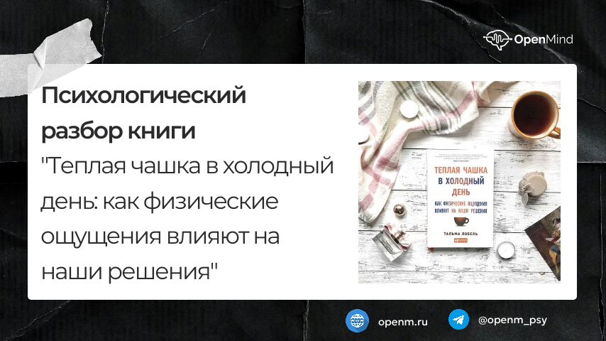 #Заметки_от_Ирины Психологический разбор книги «Теплая кружка в холодный день: как физические ощущения влияют на наши решения» Эта книга исследует связь между физическими ощущениями и нашим психологическим состоянием, а также тем, как тактильные и сенсорные переживания могут влиять на наши решения, настроение и поведение. Автор показывает, что простые физические действия — например, держать в руках теплую кружку или ощущать прохладу — могут значительно менять наше восприятие мира и внутреннее состояние. Всё описанное в книге автор подтверждает научными исследованиями, приводит ссылки на них. 1. Связь тела и разума: Книга подчеркивает важность телесных ощущений для формирования наших мыслей и решений. Это подтверждает концепцию embodied cognition — идеи о том, что ум и тело неразрывно связаны. Понимание этого помогает лучше управлять своим эмоциональным состоянием. 2. Физические ощущения как триггеры настроения: Теплые или холодные ощущения могут усиливать или снижать уровень комфорта,