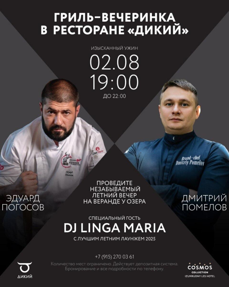 2 августа — гриль-вечер в «Диком», на веранде отеля Cosmos Collection Izumrudny Les, где дым, мясо и музыка встречаются под закатным небом у озера. Два бренд-шефа, живой огонь, пиканья, креветки, DJ-сет и идеальная атмосфера для тех, кто любит вкус лета не только в тарелке. Если проводить август красиво — то только так. #cosmosизумрудныйлес