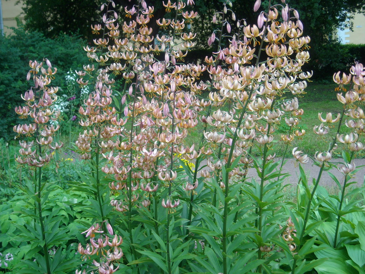 Если вы не боитесь трудностей, вы можете выращивать эти чудесные лилии в своем саду. Мартагоны довольно редкая группа лилий. В наших садах они встречаются не часто. В природе растет всего 5 видов этой группы, один из них лилия кудреватая, или саранка, царские кудри, растет в России. До сих пор создано немного сортов этой группы это мартагон гибриды, происходящие от диких форм и разновидностей. Внутри раздела выделяют некоторые группы: Мархан, Бэкхауз гибриды, Пэйсли. Недавно в гибридизации с мартагонами появилось новое направление их довольно успешно скрещивают с азиатскими лилиями. Лилии мартагон и их гибриды очень декоративны. Растения довольно мощные, высокорослые цветонос иногда достигает двух метров. Обладают высокой зимостойкостью, устойчивы к грибным и вирусным болезням. Луковицы долговечны, живут до 30 и более лет. Цветки у лилии мартагон очень изящные висячие, чалмовидные, закрученные лепестки длиной до 5 см, разнообразных нежных окрасок; обладают тонким ароматом. Количество