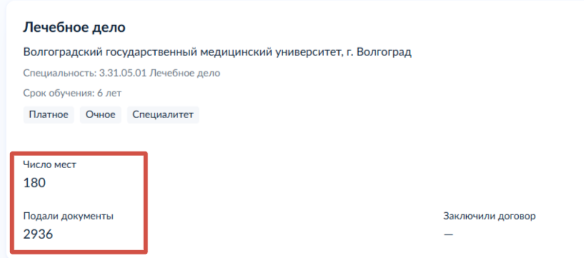 Настоящие ажиотаж на направлении «Лечебное дело», на которое набирают 458 первокурсников. Для поступление требовалось сдавать ЕГЭ по биологии, химии и русскому языку, за каждый предмет надо набрать не менее 40 баллов. В меде 13 бюджетных мест, за которые борются 3098 абитуриентов — конкурс составляет 238 человек на место. Среди подавших документы наибольшее количество баллов достигает 295. Затем идут несколько выпускников с 291 баллом, некоторые уже подписали электронное согласие на поступление, так что есть все основания поздравить их со статусом студента. Конкурс на платное обучение составляет 16 человек. Мест всего 180, а желающих — 2936. Стоимость первого года обучения уже известна, 240 тысяч