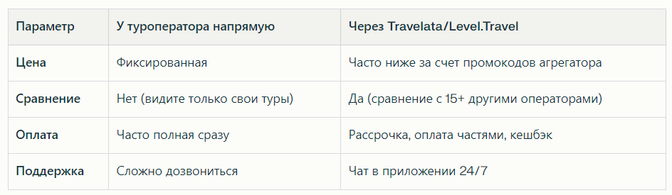 💡 Лайфхак: Цены могут меняться каждый час. Сравните предложения на всех трех сайтах, чтобы поймать «горящий» вариант. А для максимальной экономии изучите календарь низких цен на Travelata и Level.Travel.