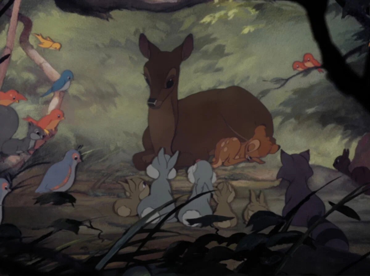 У меня на протяжения всей жизни было ощущение, что я не смотрела целиком "Бемби" (или "Бэмби"...). Я знала этот мультфильм, видела некоторые моменты, но сильно его не запомнила. Мне кажется, это из-за того, что, сам по себе, мультфильм бессюжетный, очень простой и детский.